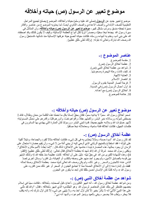 موضوع تعبير عن الرسول ص حياته وأخلاقه ملزمتي