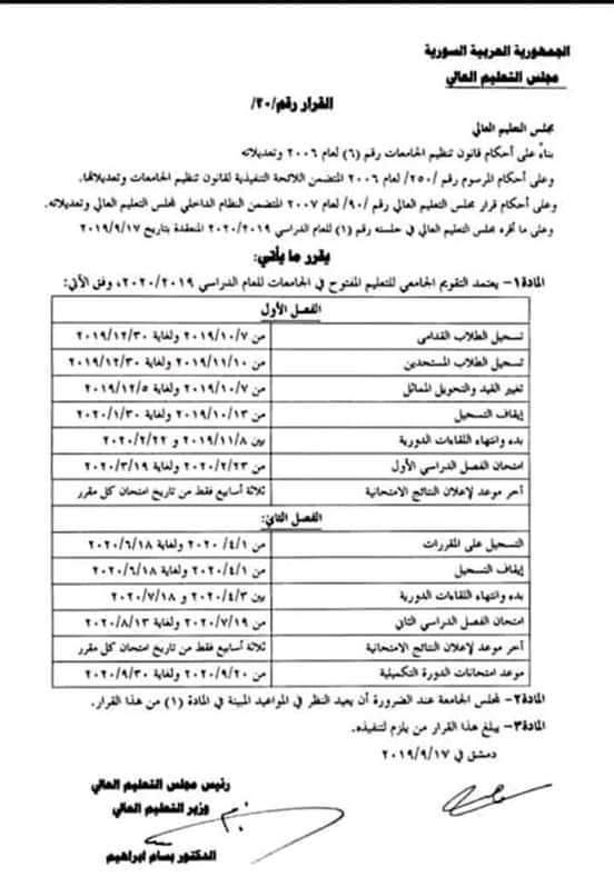 طلاب سوريا مواعيد التسجيل للطلاب القدامى في الجامعات الحكومية السورية للعام الدراسي الجديد 2020 2021 Facebook