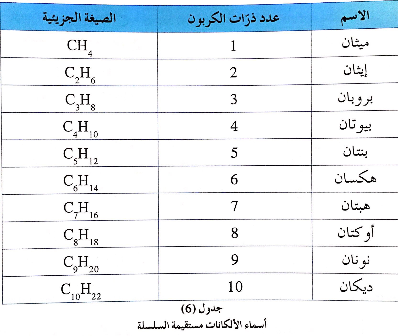 أول 10 الكانات Alkanes