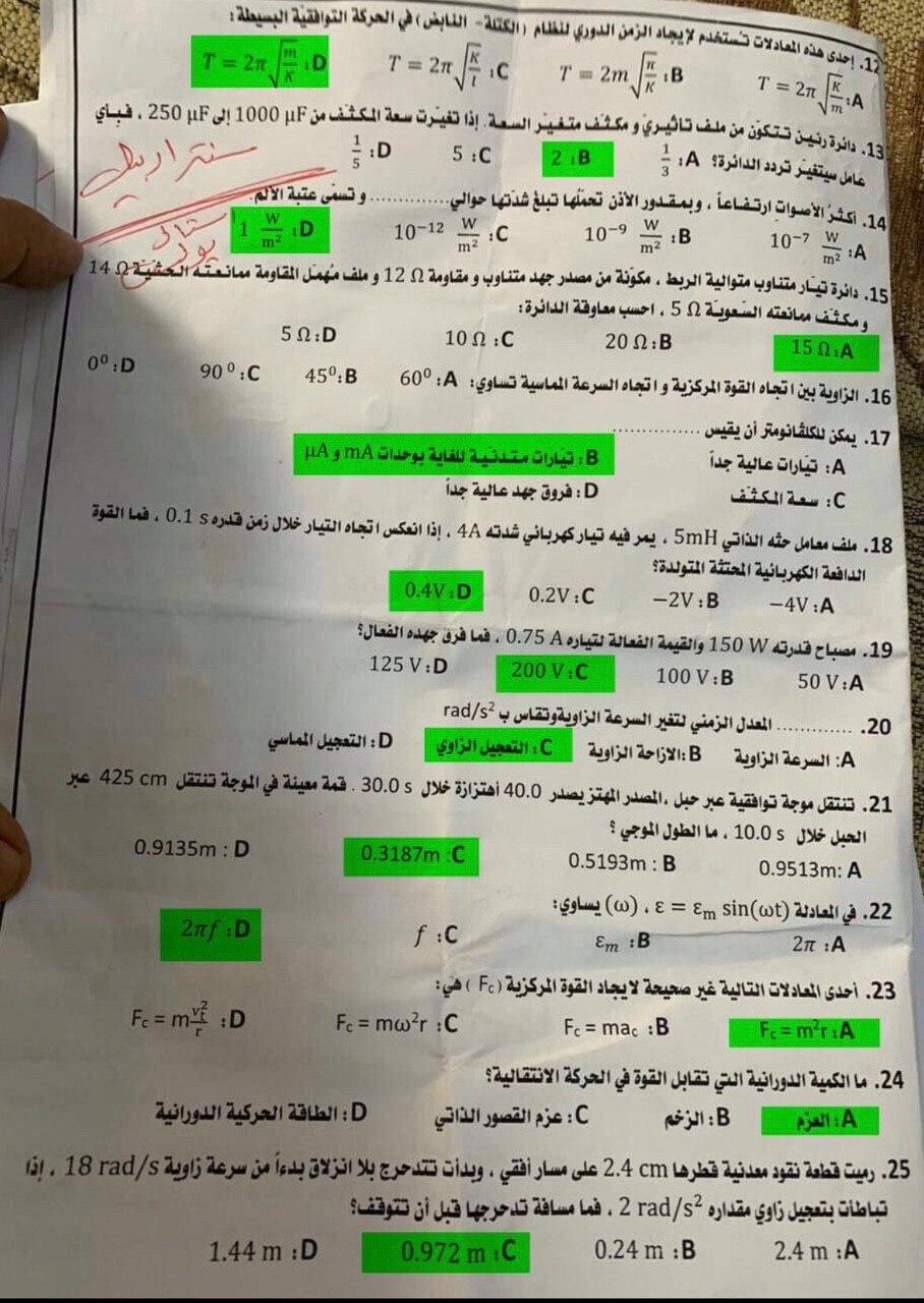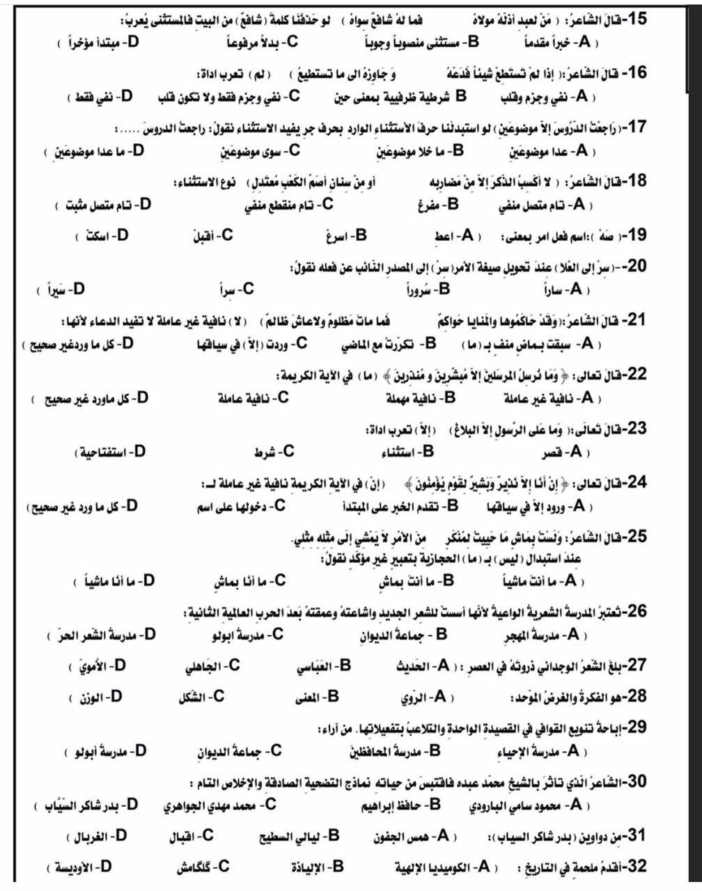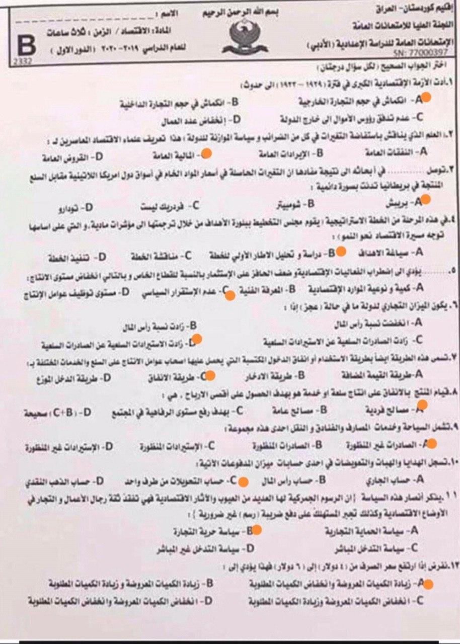 اسئلة الامتحانات الوزارية لامتحانات اقليم كردستان الدور الاول 2020.