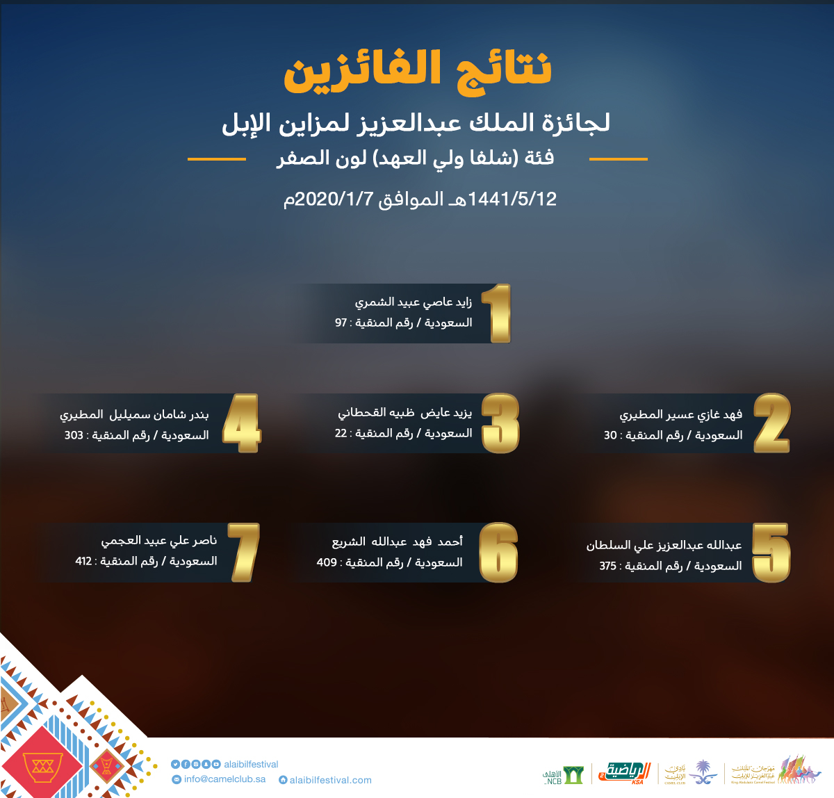 مهرجان الإبل On Twitter نبارك للفائزين في فئة شلفا ولي العهد للون الصفر بجائزة مزاين الإبل ضمن مسابقات مهرجان الملك عبدالعزيز للإبل 4