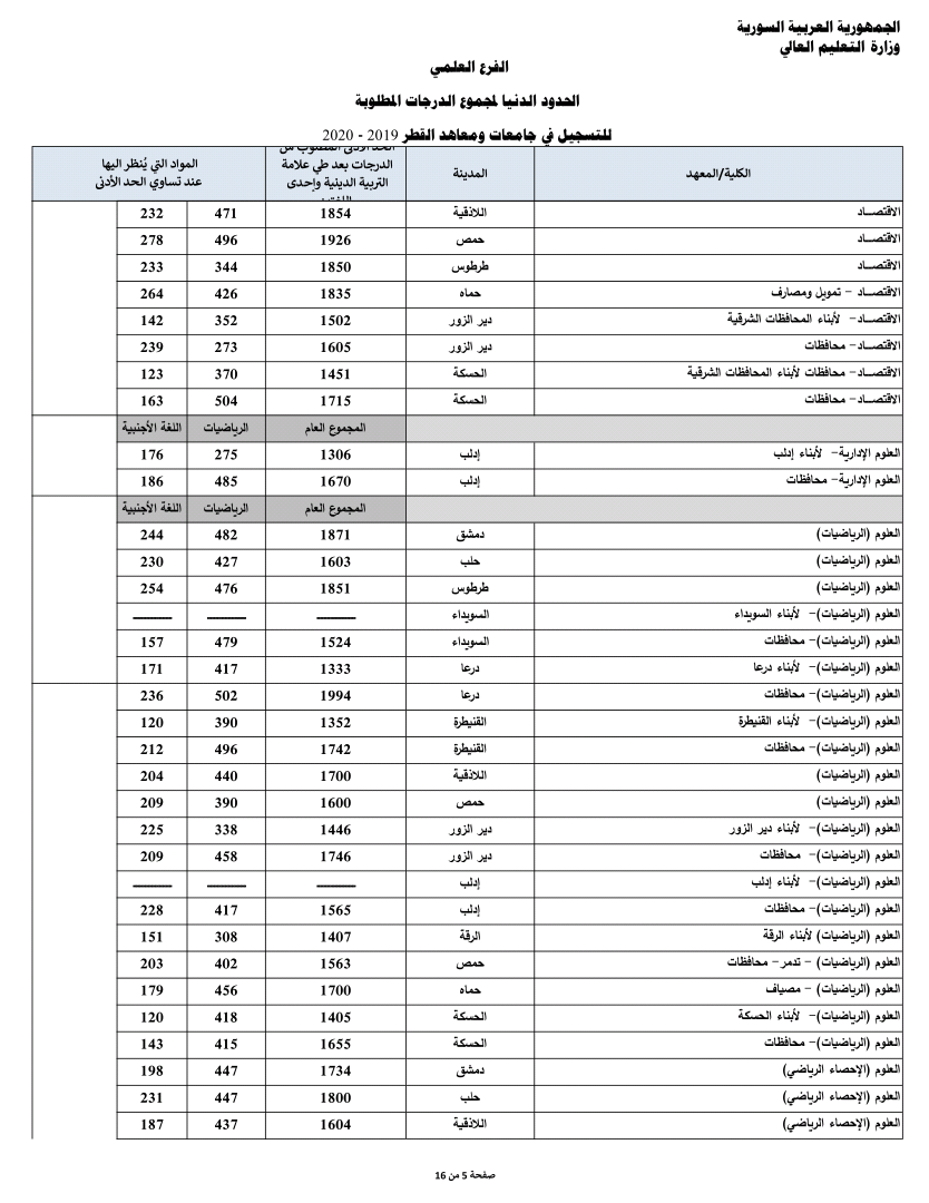 نتائج مفاضلة العلمي 2019 2020. نتائج مسابقة القبول بكلية العمارة 2019 2020. مفاضلة البكالوريا 2019 2020 المفاضلة الثانية القبول الجامعي للحاصلين على البكالوريا العلمي 2019 نتائج مفاضلة البكالوريا المفاضلة الثانية المعدلات النهائية للقبول الجامعي في سوريا. نتائج مفاضلة التعليم الموازي للعام الدراسي 2019 2020 للتعليم العام الفرع العلمي و التعليم المهني و السنة التحضيرية تعرف على النتائج وكافة التفاصيل.