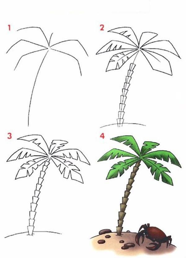طريقة رسم نخلة وكيفية رسم نخلة خطوة بخطوة