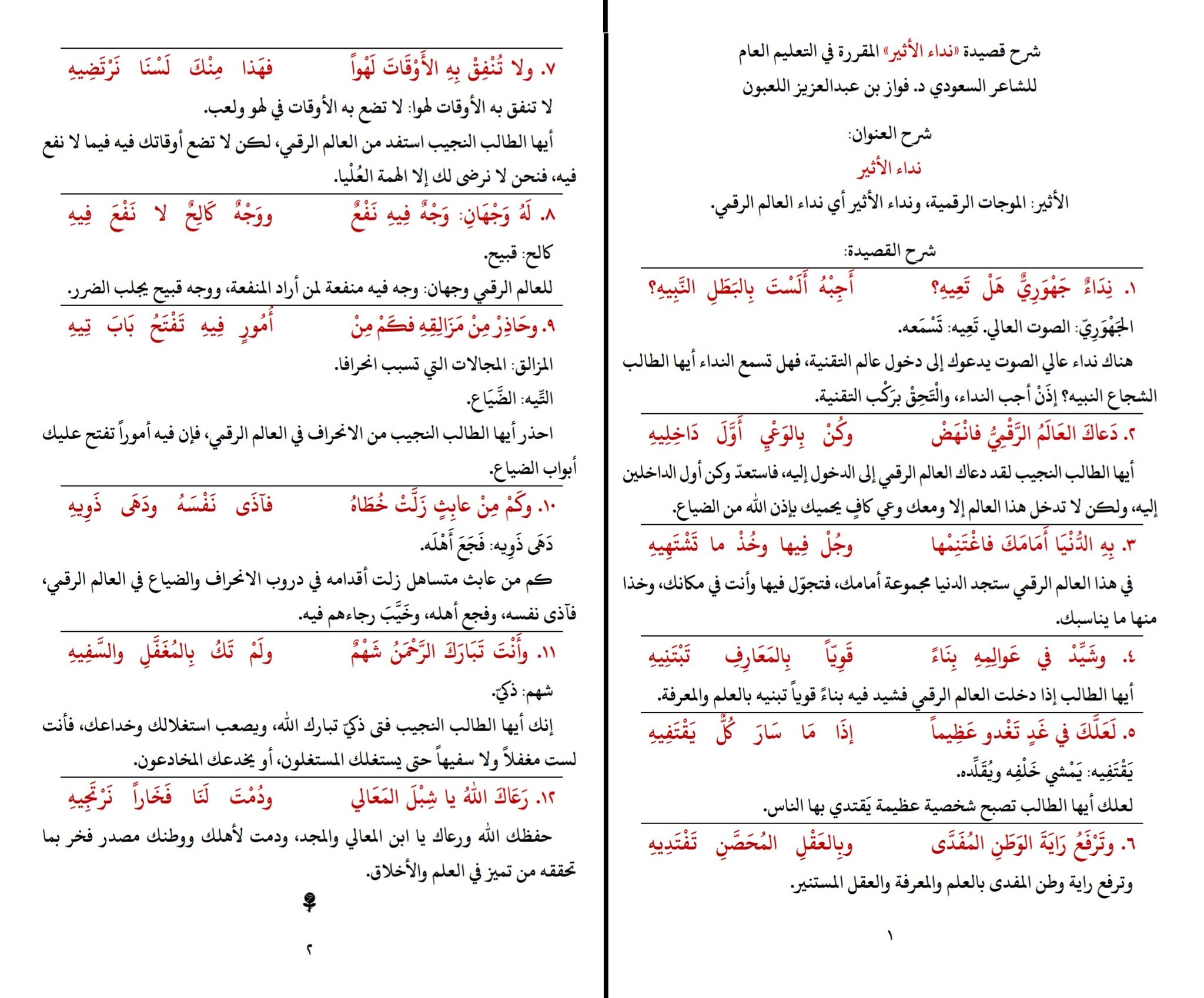 فواز اللعبون On Twitter شرح قصيدة نداء الأثير المقررة على الطلاب والطالبات في الصف الثاني المتوسط