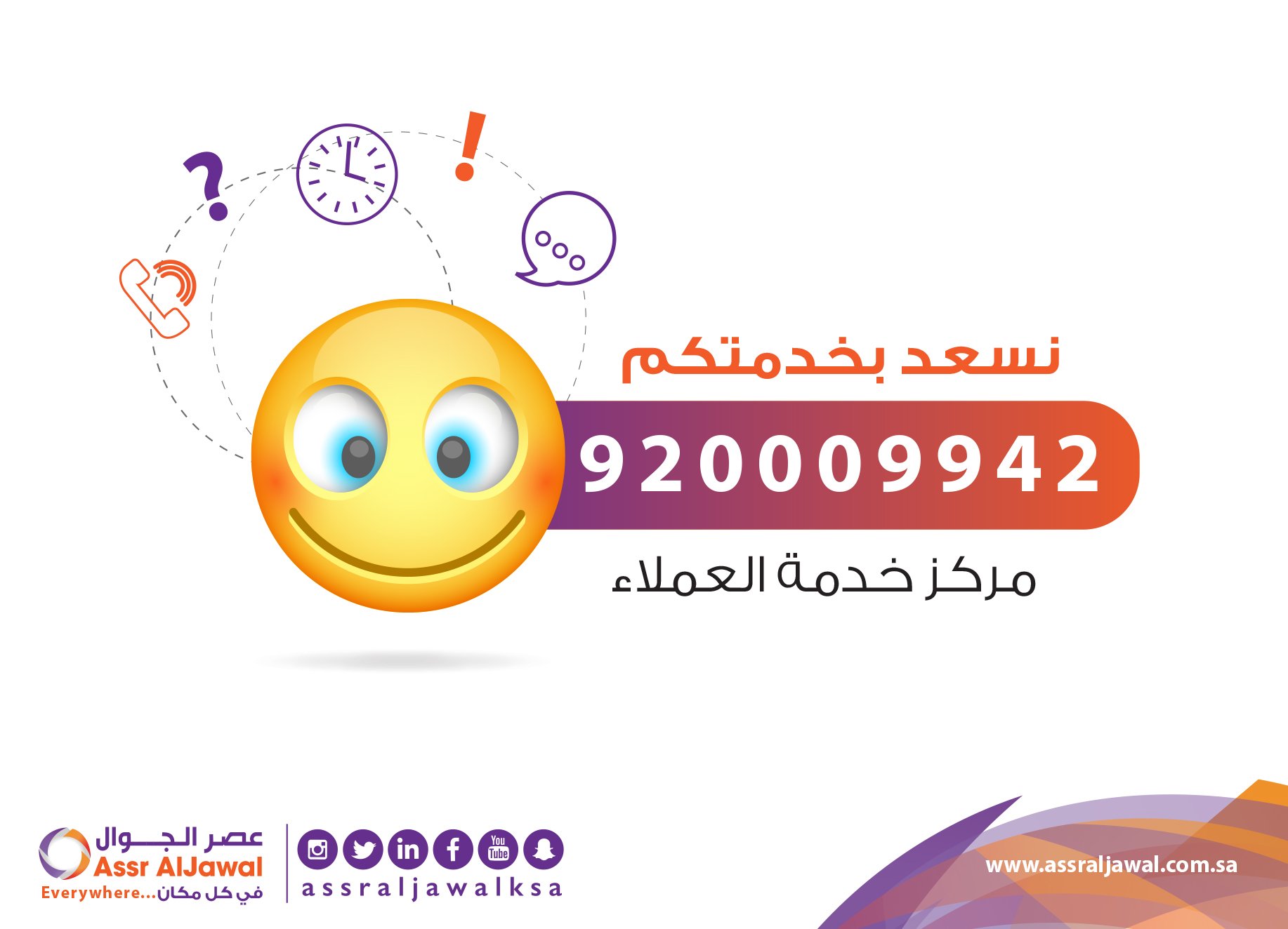 عصر الجوال السعودية On Twitter دايما نسعد بخدمتكم عندك اي استفسار تواصل معنا مركز خدمة العملاء على الرقم Tel 920009942