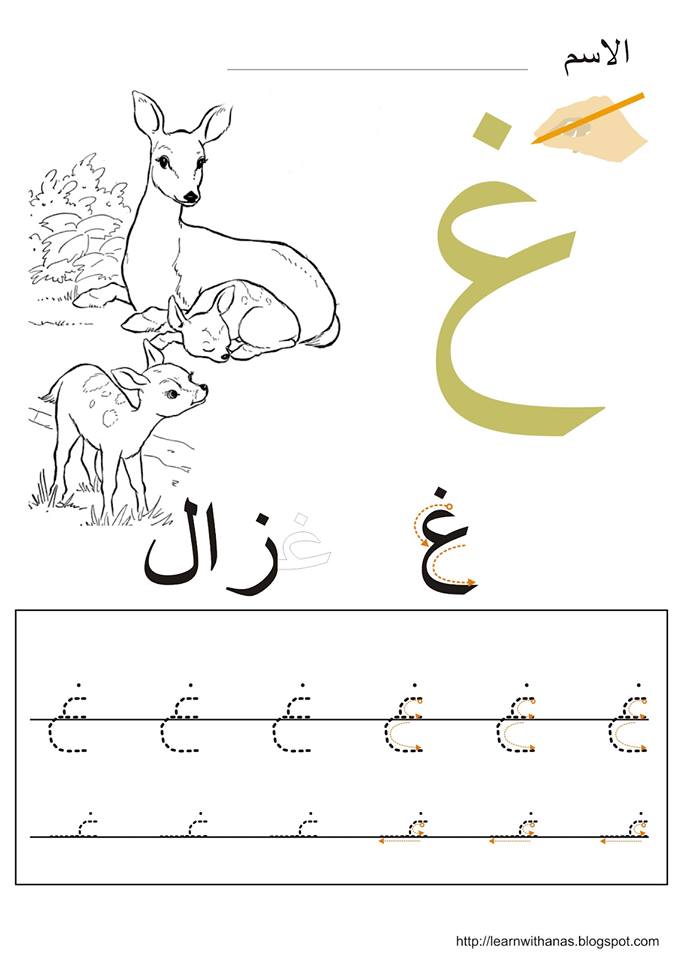 تلوين حرف الغين غين غزالة غين غراب غين غصن Learn Arabic Alphabet Arabic Alphabet For Kids Learning Arabic