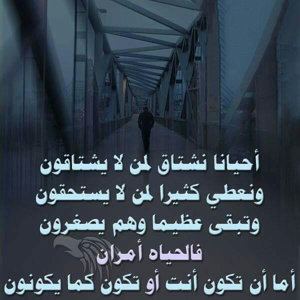 أحيانآ نشتاق لمن لا يشتاقون ونعطي لمن لا يستحقون ونبقى عظماء وهم يصغرون فالحياه أمران إما أن تكون أنت أو تكون كما يريدووون أعطي ظهري لهم ويرحلون