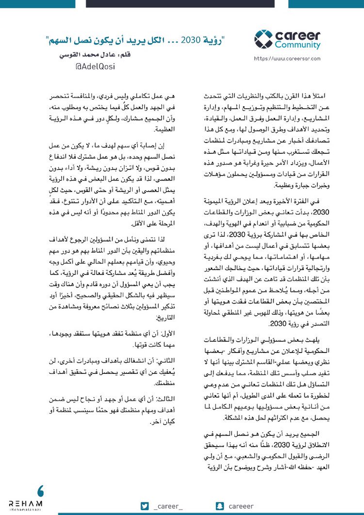 المجتمع الوظيفي On Twitter رؤية ٢٠٣٠ الكل يريد أن يكون نصل السهم