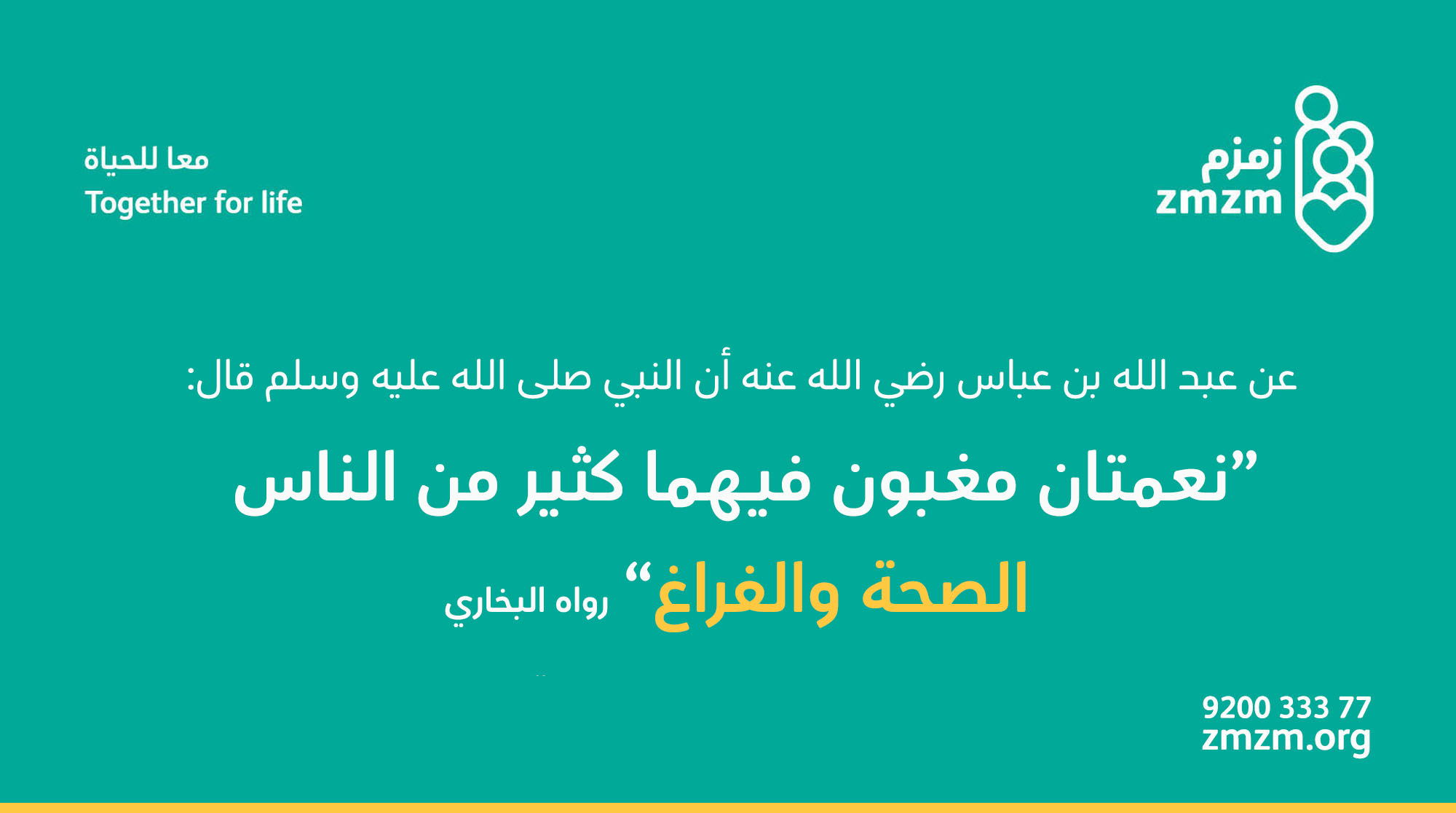 جمعية زمزم Pa Twitter عن عبد الله بن عباس رضي الله عنه أن النبي صلى الله عليه وسلم قال نعمتان مغبون فيهما كثير من الناس الصحة والفراغ رواه البخاري اعزل نفسك جمعية زمزم Https T Co L63euloxyu