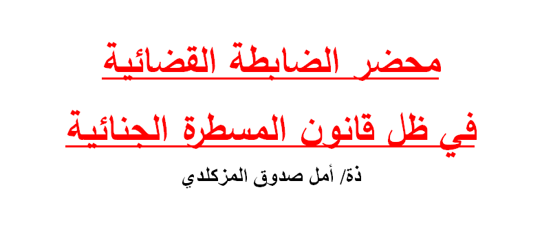 محضر الضابطة القضائية في ظل قانون المسطرة الجنائية ذة أمل صدوق المزكلدي