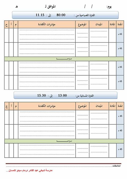 نموذج الكراس اليومي نموذج مذكرة نموذج كراس المعالجة البيداغوجية الجيل الثاني Education Booklet Memorandum