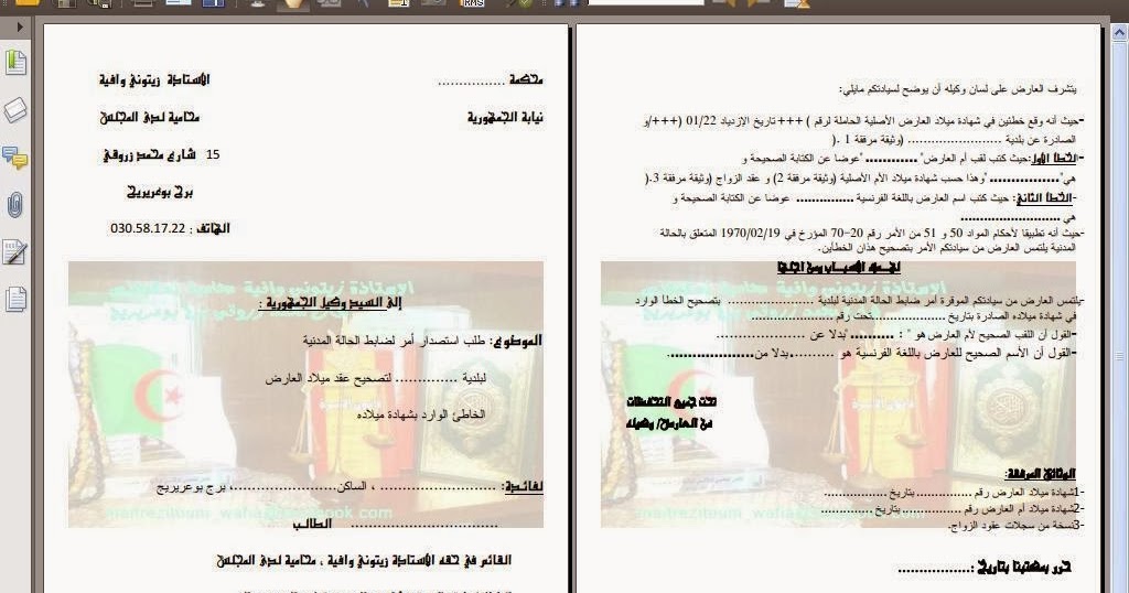 Maitre Zitouni Wafia نموذج طلب استصدار امر لضابط الحالة المدنية