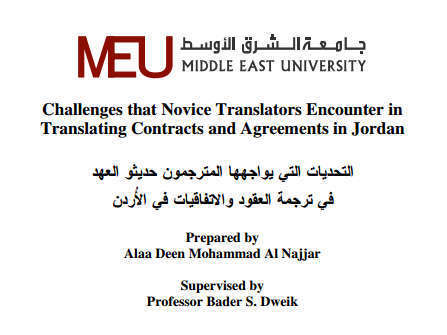Ar En Pdf التحديات التي يواجهها المترجمون حديثو العهد في ترجمة العقود والاتفاقيات في الأردن Alaa Deen Mohammad Al Najjar Glossarissimo