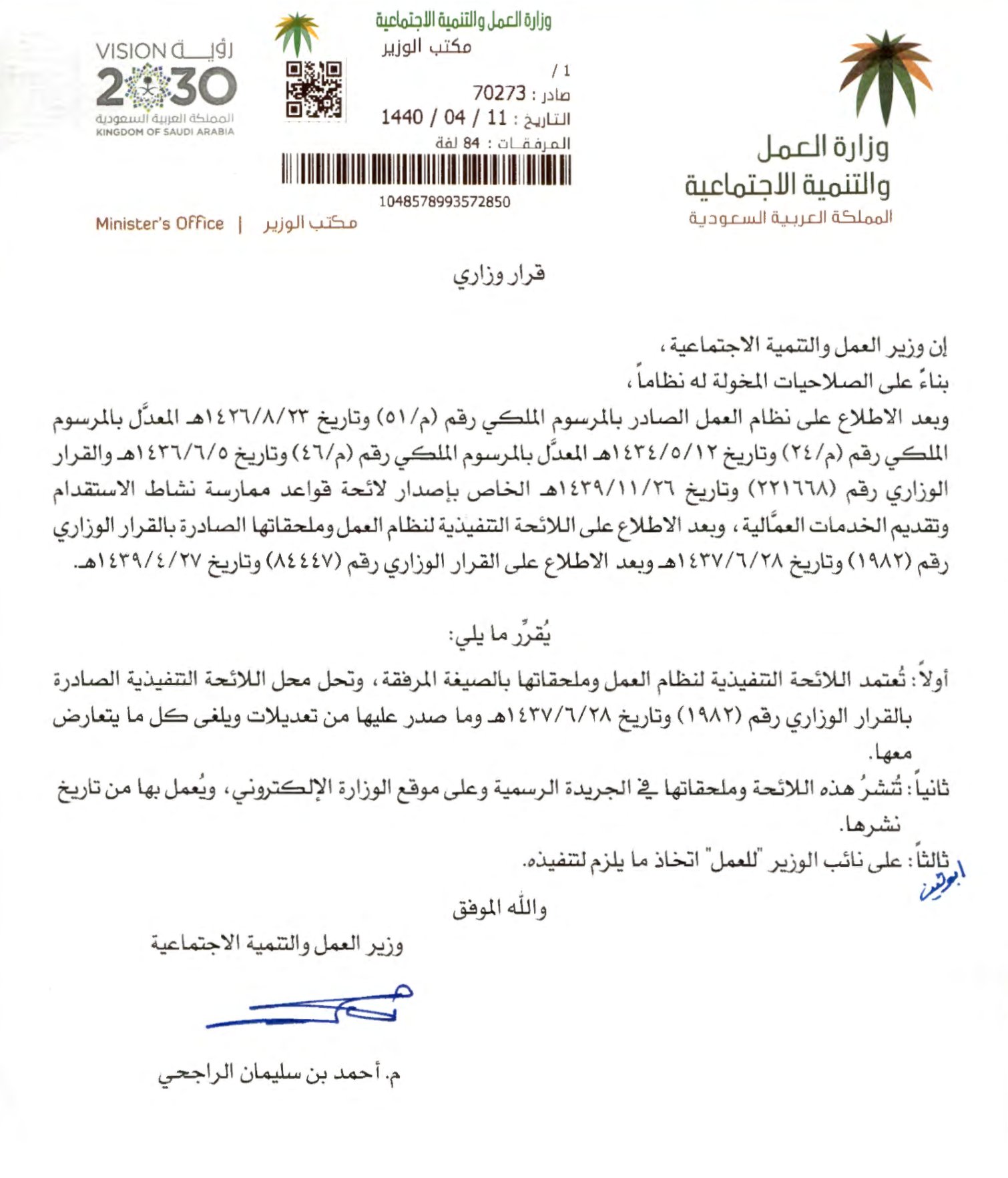 هاني العنزي On Twitter 1 بالأمس صدر قرار معالي وزير العمل والتنمية الاجتماعية باعتماد اللائحة التنفيذية لنظام العمل وملحقاتها والتي ستحل محل اللائحة السابقة التي صدرت بتاريخ ٢٨ ٦ ١٤٣٧ هـ