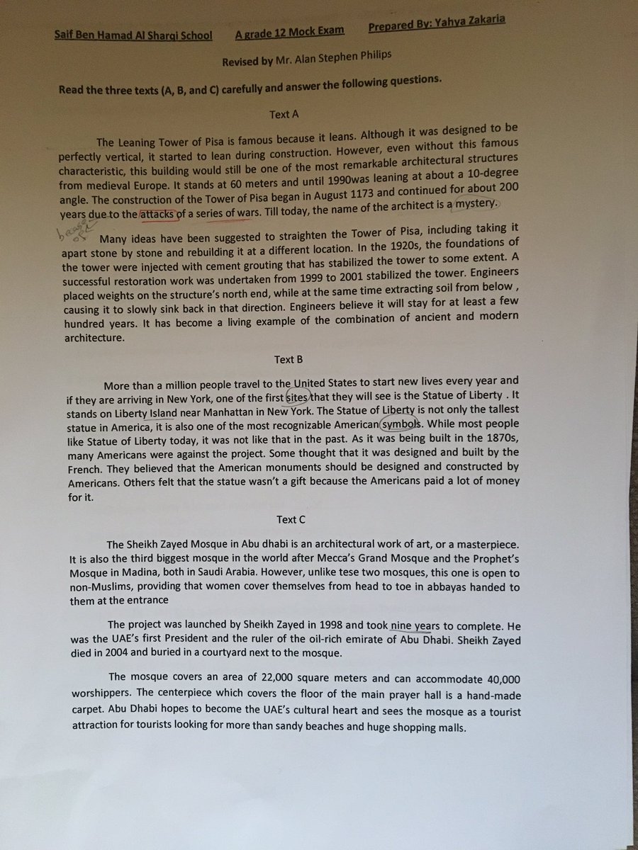 اجابة امتحان اللغة الانجليزية للصف الاول الثانوي مارس 2019 Essay Writing Essay First Language
