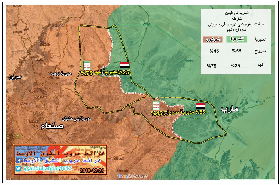 خرائط حروب الشرق الاوسط Na Twitterze الحرب في اليمن معركة نهم خارطة تبين نسبة السيطرة على الارض في مديريتي صرواح ونهم بعد اكثر من اسبوعين من القتال