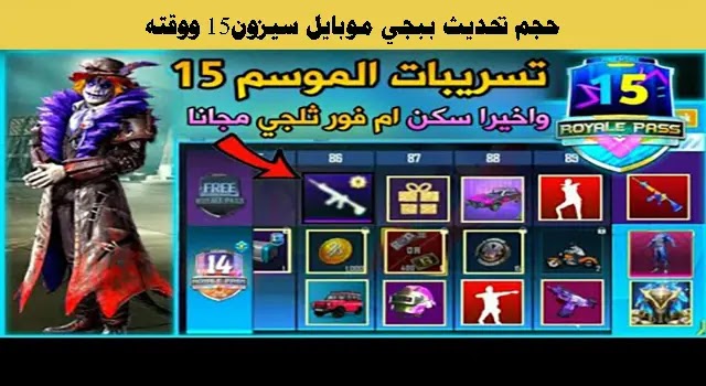 حجم تحديث ببجي موبايل سيزون15 ووقته