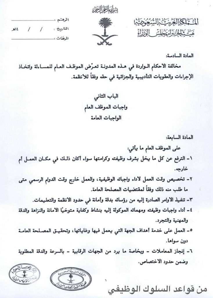 عبدالعزيز القحطاني On Twitter أضافه هذه واجبات الموظف العام كما تم نشرها ومنها مايتعلق بخارج العمل وفيه مايسمى السلوك العام في كل لوائح وتنظيمات الاعمال تتعلق بسلوك الموظف خارج مكان العمل