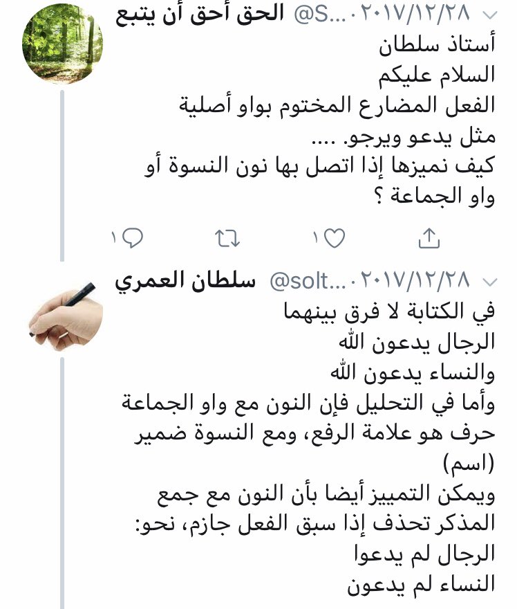 سلطان العمري On Twitter الفعل المضارع المختوم بواو أصلية مثل يدعو يرجو كيف نميزها إذا اتصل بها نون النسوة أو واو الجماعة
