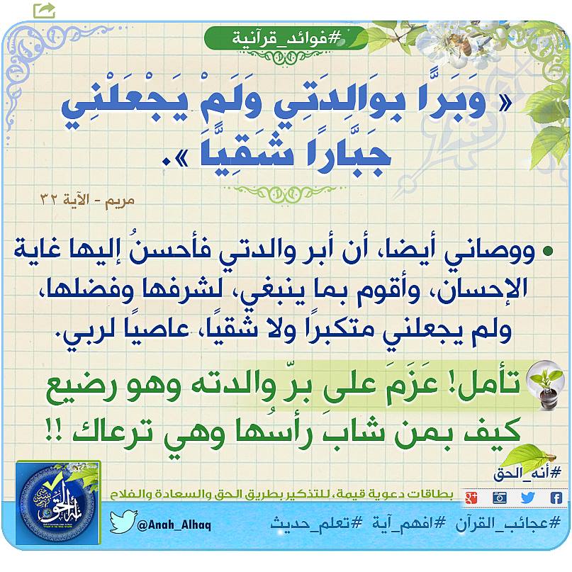رسائل الإيمان Twitter Da و ب ر ا ب و ال د ت ي و ل م ي ج ع ل ن ي ج ب ار ا ش ق ي ا سورة مريم 32 Http T Co Q1rvrifbsp