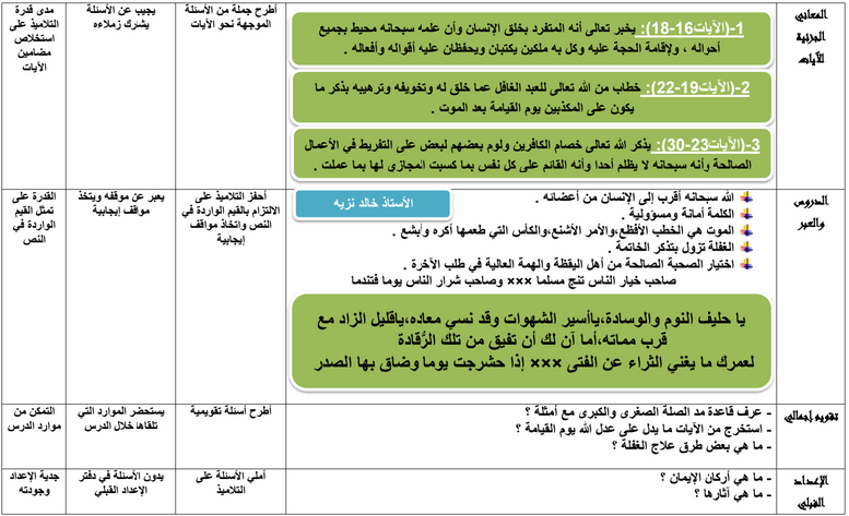 درس سورة ق الشطر الثاني مادة التربية الاسلامية للسنة الأولى إعدادي الدراسة